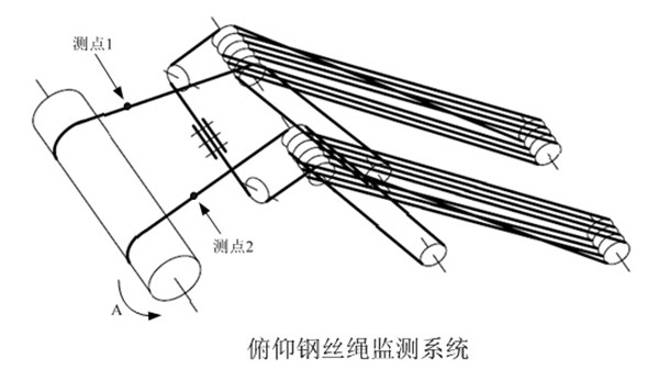 俯仰鋼絲繩系統(tǒng)共布置了2個測點,示意圖如下: