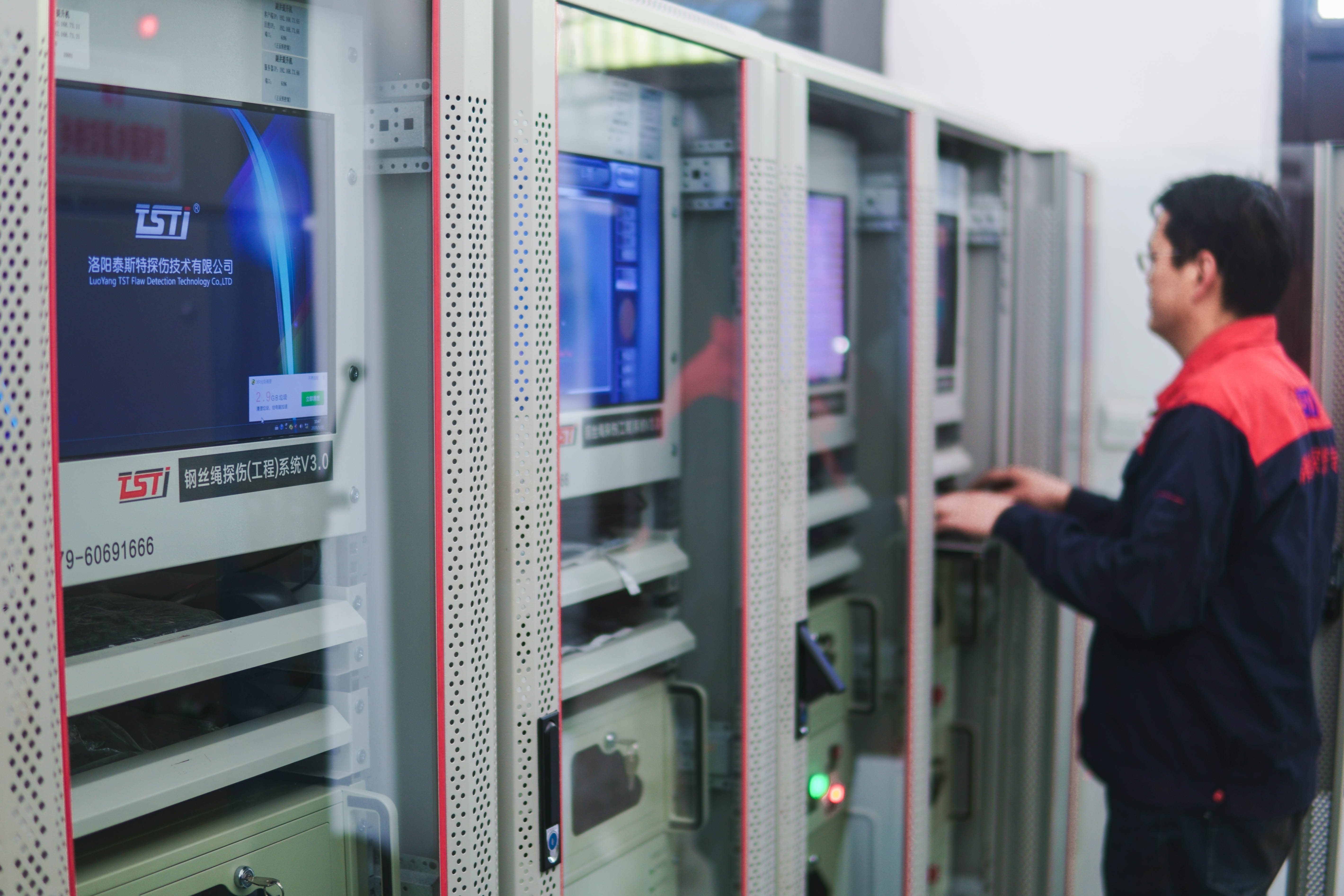 洛陽泰斯特探傷技術有限公司憑借“全磁檢測”核心技術,也將積極響應國家礦山安監(jiān)局工作的開展,我們所研制的智能型探傷工程自動化裝置可適用于智慧礦山中的單繩纏繞式提升機、四/六繩井塔式提升機、四/六繩斜井式提升機、乘人架空裝置等不同系統(tǒng)中,可以對鋼絲繩內外部的斷絲、磨損、銹蝕等各種隱蔽性損傷進行24小時不間斷的監(jiān)測及實時預警,并給出探測數(shù)據(jù)和損傷數(shù)值,并且能夠做出安全狀況評價,工作人員可根據(jù)所探測出的結果來判斷是否需要更換鋼絲繩。