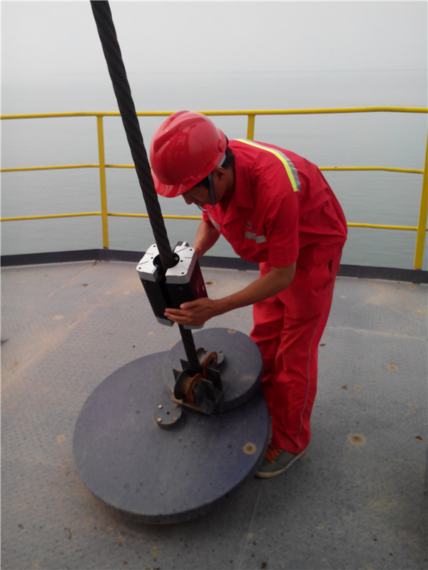 港口用無繩在線實時監(jiān)測系統(tǒng)為無繩、皮帶牽引鋼絲繩在線實時探傷而設計,可適應抱索器不可拆卸的工況條件,屬智能型探傷工程自動化監(jiān)測裝置。系統(tǒng)采用全天候無人值守自動探傷監(jiān)管模式,利于及時了解運行中鋼絲繩使用狀況,保障安全。 該系統(tǒng)獨創(chuàng)“三維磁感應橋”、“變量補償傳感器”、“自平衡同步勵磁”、“半閉合磁路和傳感器分布”、“結構形式”、“用軟件”等組合創(chuàng)新技術集成,實現(xiàn)全天候在線實時自動探測、聲光報警、遠程監(jiān)管,可隨時查閱鋼絲繩的內(nèi)外斷絲、磨損、銹腐蝕、疲勞、變形等損傷的量值、位置、類型等損傷信息,定時打印探傷報告。